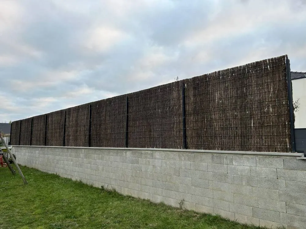 Dans ce projet, la clôture rigide était déjà installée. L’intervention a donc consisté à fixer la brande de bruyère de manière stable, sans détériorer la structure d’origine, pour un résultat harmonieux et solide.